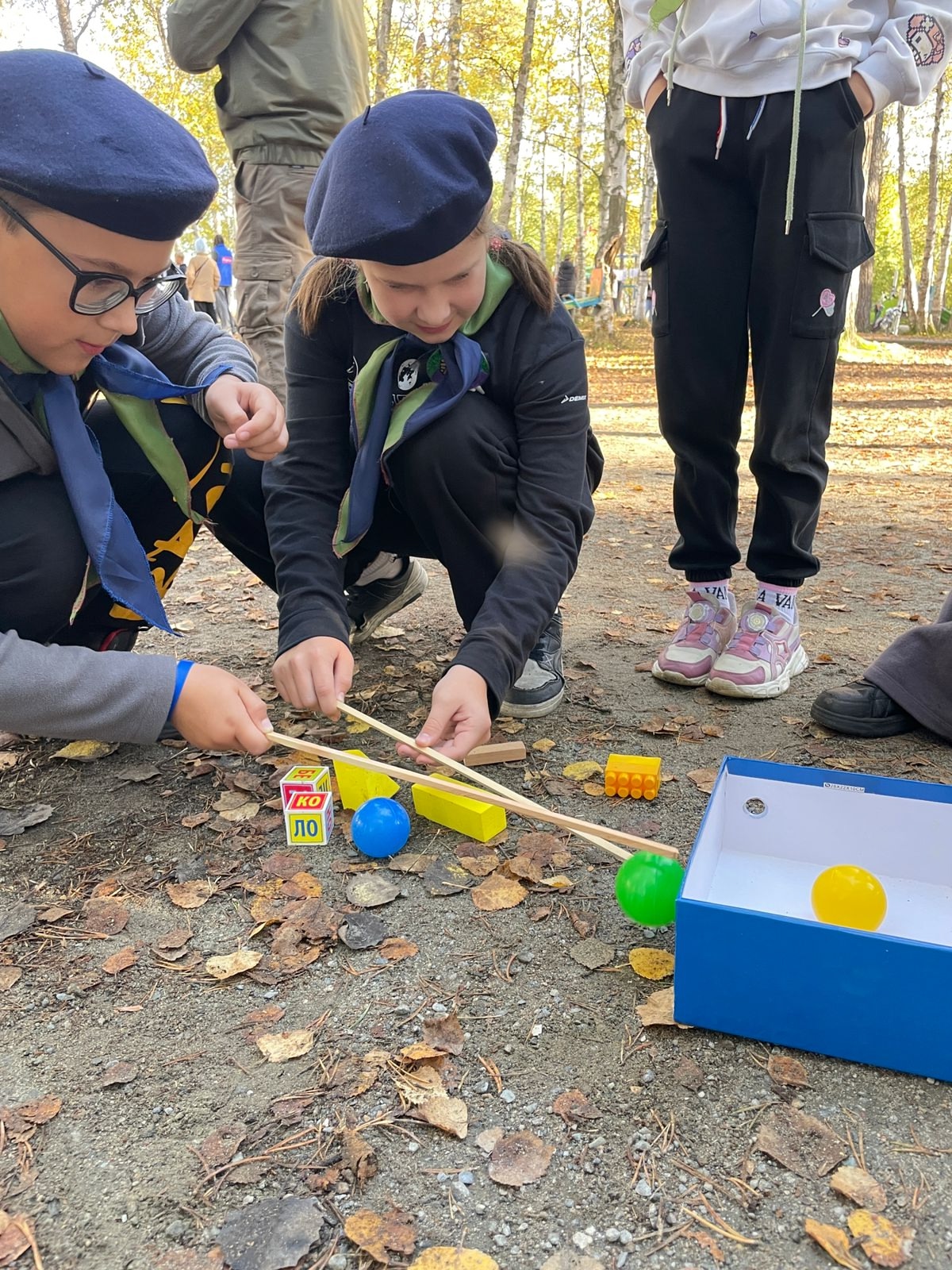 * конкурсы «Доверчивые шары», «Волшебные палочки», «Электрический треугольник», «Переправа по болоту», «Азимут», «Лекарственные растения Мурманской области», «Плот» и «Типы костров».