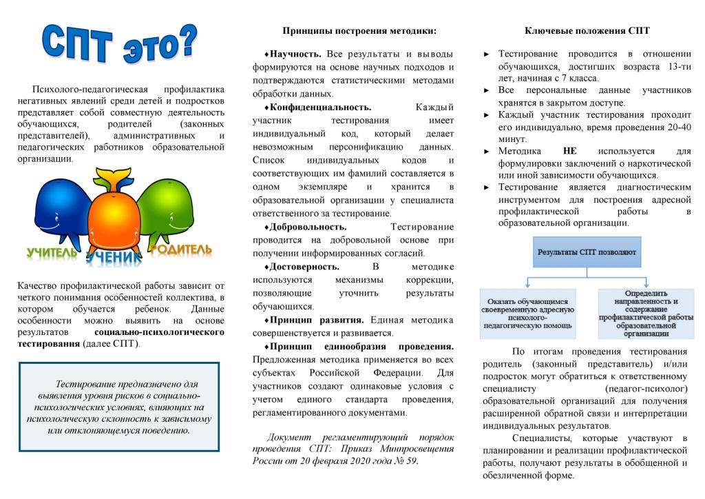 Социально-психологическое тестирование позволяет оценить процесс становления личности обучающегося. Нормальное взросление и развитие – это достижение поставленных целей, получение образования и выход в самостоятельную жизнь. Однако этот процесс может нарушаться. Социально-психологическое тестирование позволяет вовремя заметить возникающие проблемы в развитии и предложить своевременную помощь обучающемуся и его семье.